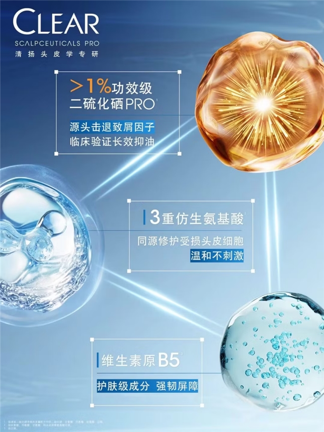 明白了成分原理,我们再来看产品。清扬推出的清扬二硫化硒蓝C瓶 ,正是针对反复发作的严重头屑和头油问题设计的。它不仅仅是添加了二硫化硒,更做了一套“组合拳”式的配方。