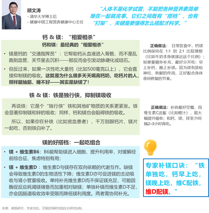 镁与宏量元素及维生素之间即协同又拮抗,补镁需关注促镁吸收的“镁”食伙伴