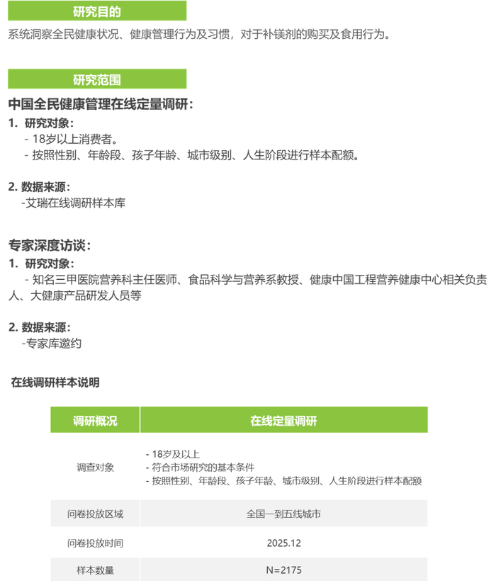 关注全民及细分人群镁营养状况,驱动补镁场景化解决方案落地