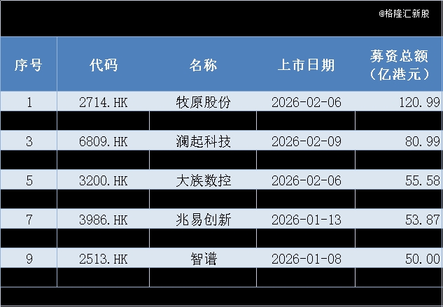 2026年一季度,港股IPO募资金额排名前3的新股分别是牧原股份、东鹏饮料、澜起科技,分别募资120.99亿港元、110.99亿港元、80.99亿港元,这3家公司都是A+H双重上市。