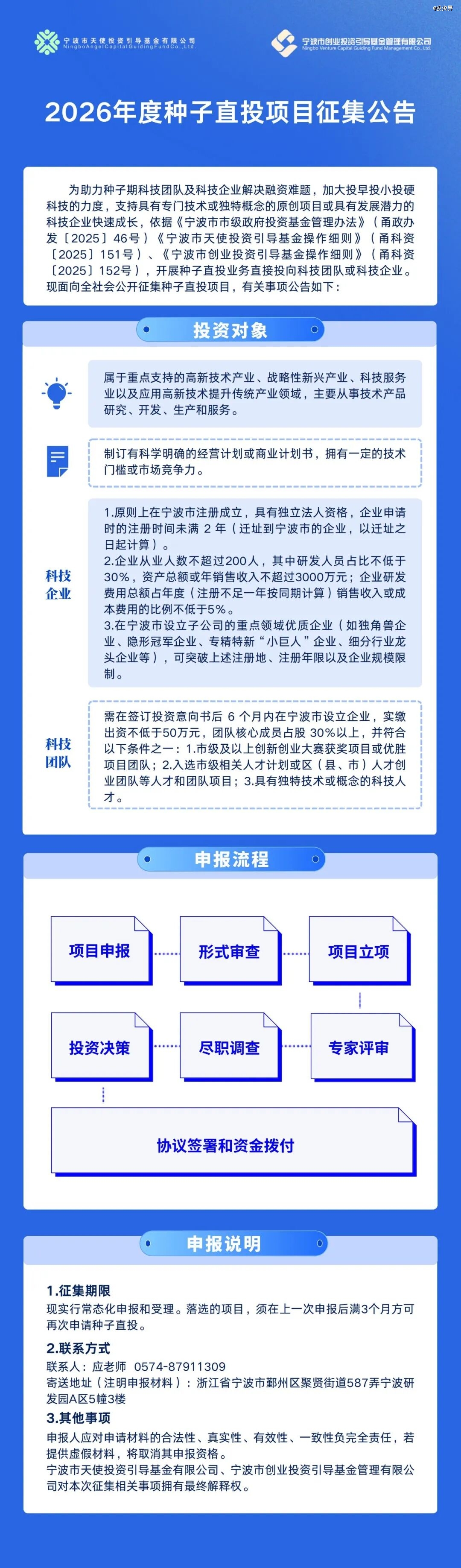 关于公开征集宁波市天使投资引导基金、宁波市创业投资引导基金2026年度种子直投项目的公告