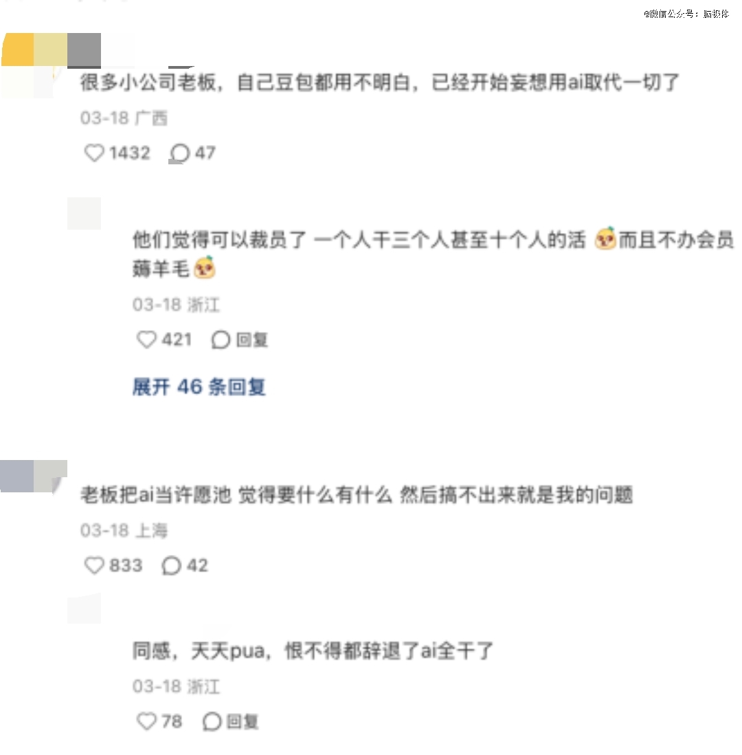 久而久之,越来越多的打工人意识到:老板的焦虑已经扭曲了评价标准。在这个被扭曲的标准下,“看起来努力”比“真的有用”更重要,“显得在跟进”比“实际在落地”更受认可。