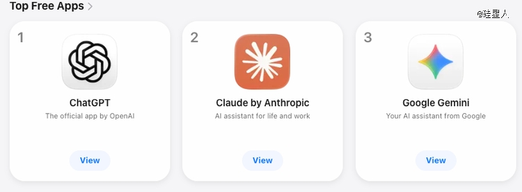 App Store排名上,Meta AI因Muse Spark发布冲进前十,Gemini仍然稳居第3,仅次于ChatGPT和Claude。