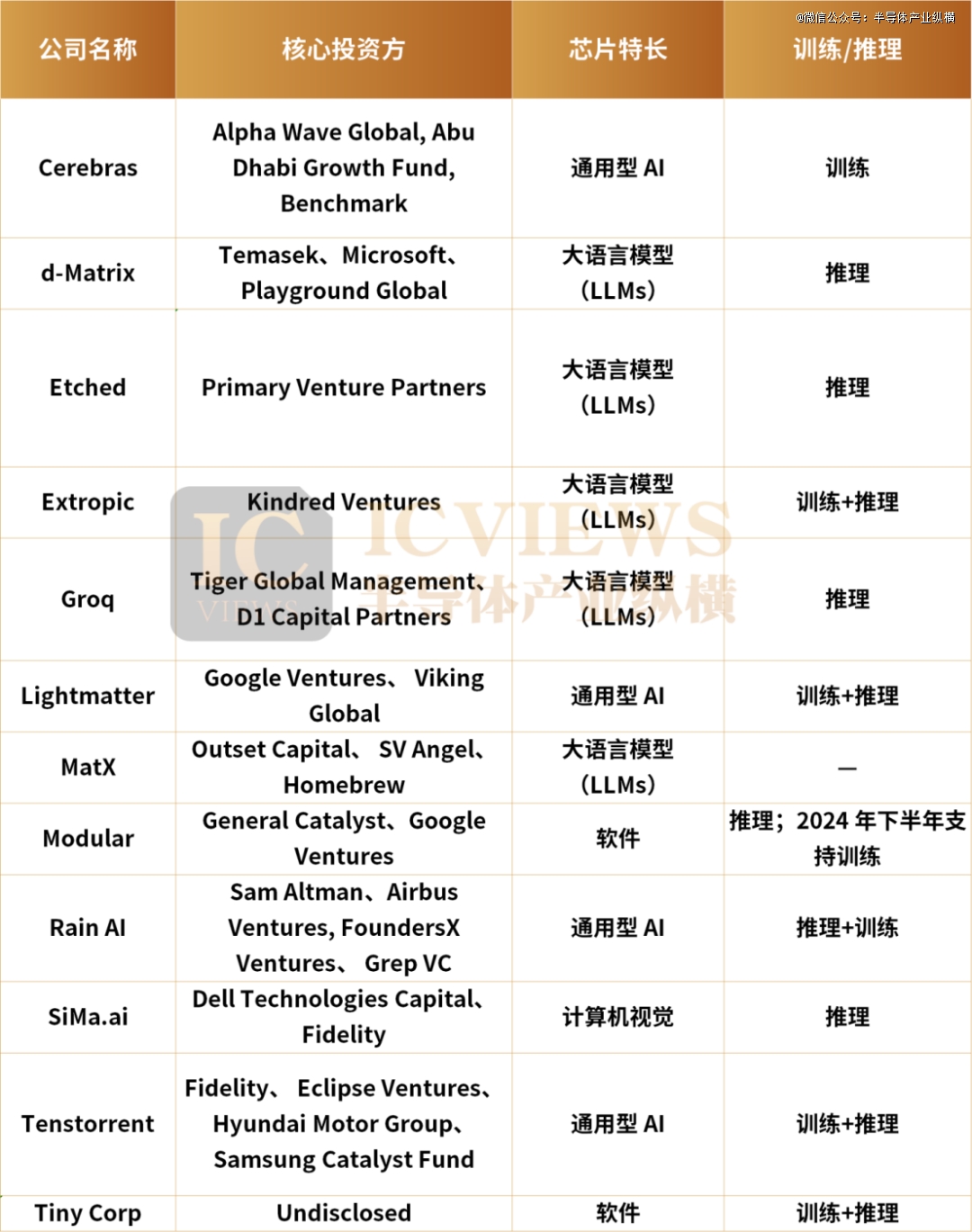 剩下的99家,是撑起赛道创新活力的初创公司。它们大多瞄准细分场景,专攻专用人工智能加速器,Tenstorrent、Cerebras、SambaNova、Groq、Esperanto 等玩家,曾凭借差异化技术路线收获不少关注。