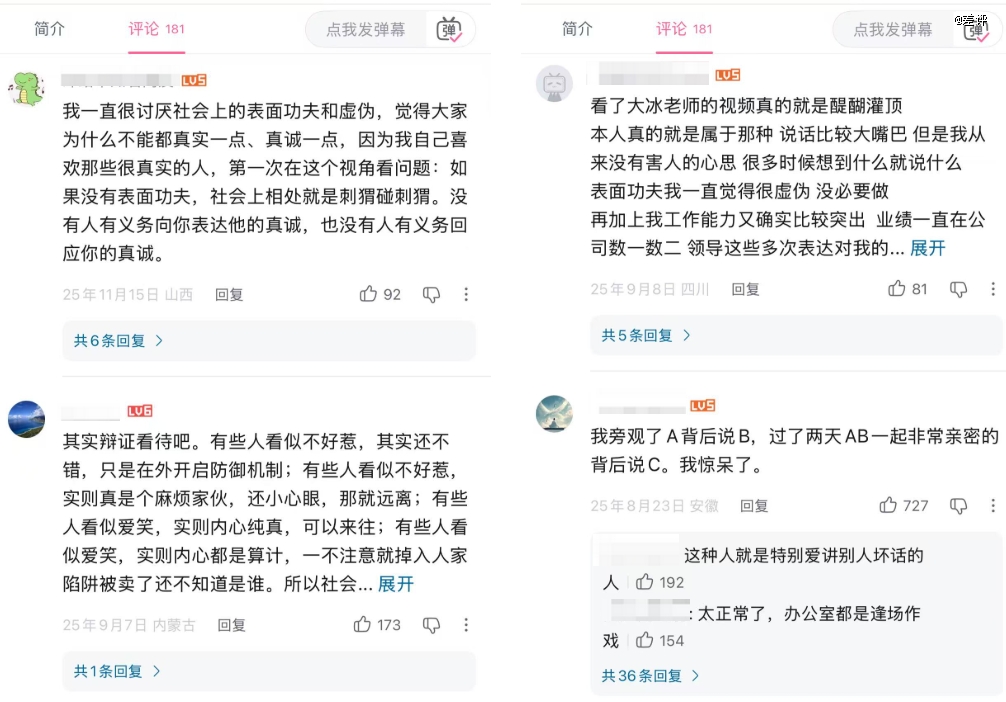 还有期聊同事之间相处之道的,年轻人讨厌表面功夫跟逢场作戏,觉得为什么彼此不能真诚一点?