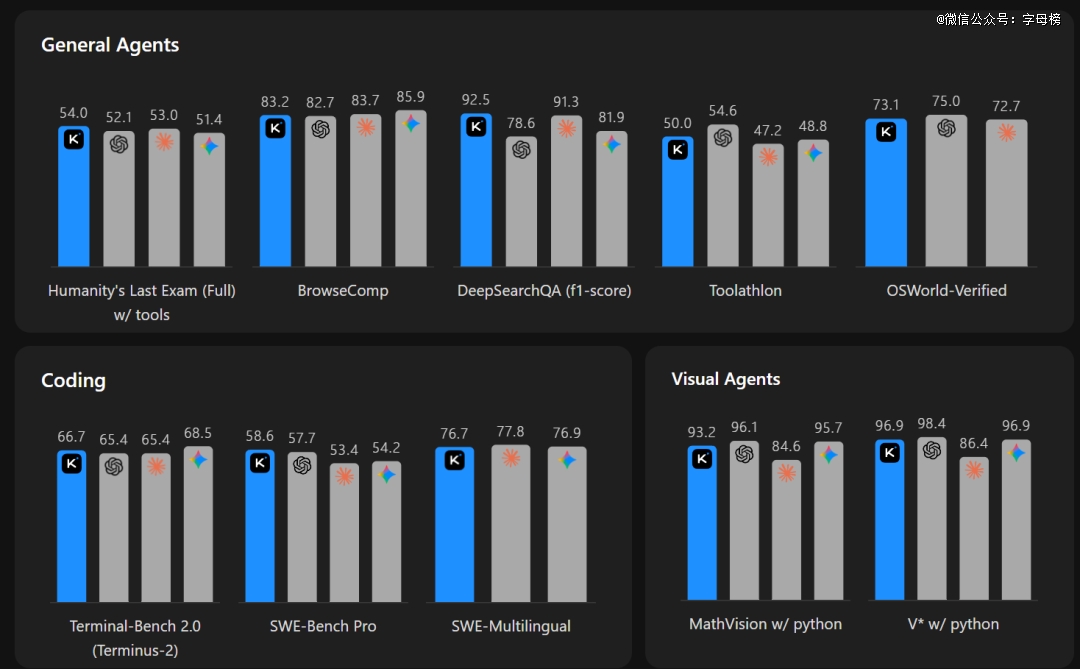 在基准测试中,K2.6的评分就足以说明一切问题。