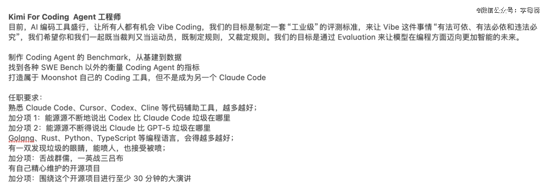 更有意思的是,3月份月之暗面招Coding agent工程师时,更是打出“不限学历”的旗号。