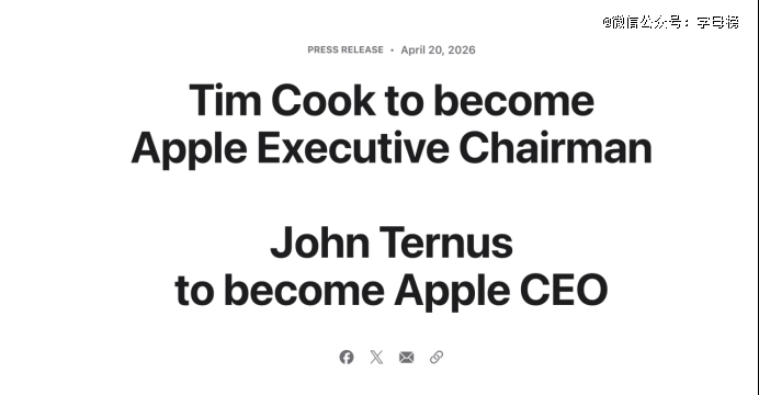 在此前未有任何公开的继任计划的情况下,当地时间4月20日,苹果宣布重大人事变动。