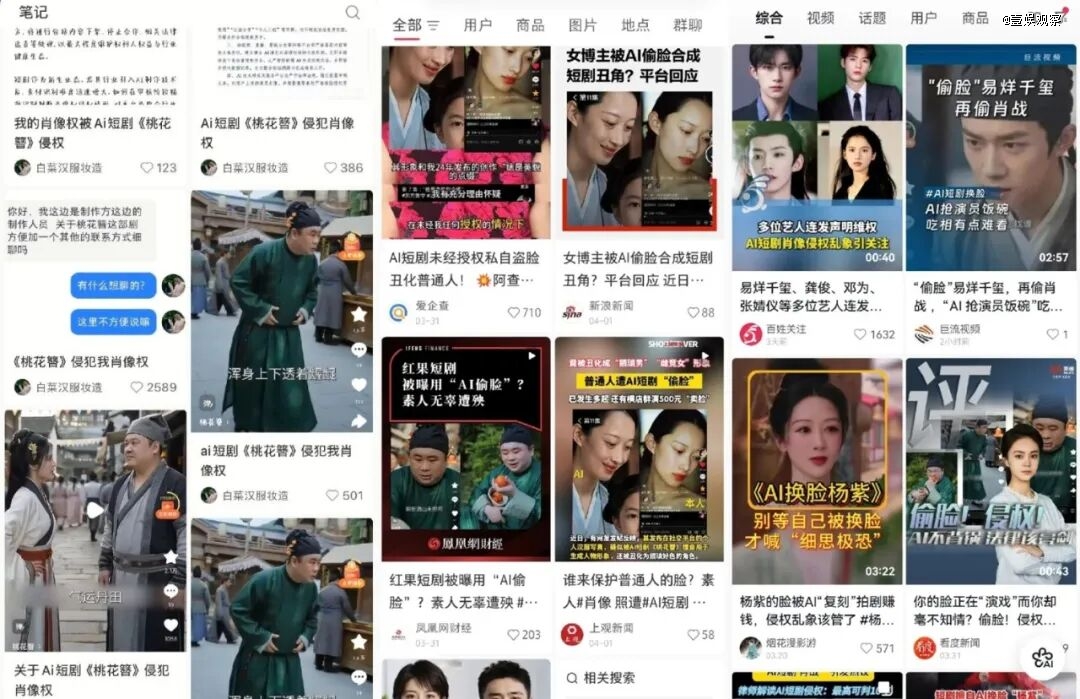 以红果代表的短剧平台,某AI短剧甚至都已经开始用上一些素人的面部素材,而在市场上,明星被AI换脸的官司更是不断。这些内容已经在上线、已经在分账、已经有真金白银的观众在消费。