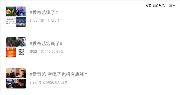 不光工作室发文,各家粉丝、网友们对这事儿也不咋看好,#爱奇艺疯了# 这个词条直接冲上微博热搜。