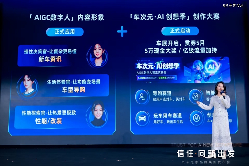据悉,本次发布的 AI 技术矩阵,深度融合汽车之家自研仓颉大模型等核心能力,构建覆盖全场景的智能服务体系。全新数字人作为汽车消费领域创新交互载体,突破传统图文、语音交互局限,可直观了解车辆真实细节、提供个性化选车建议,让用户足不出户即可享受“一对一”专业服务;通过现场展示,AI 智能助手实现全场景智能覆盖,精准捕捉用户需求,提供匹配度超 90% 的个性化推荐与专业参考,借助科技与智能的力量,真正实现决策安心、买车省心、信任托付,让汽车消费回归简单。AIGC创意大赛同步启动,以汽车为创作主线,诚邀全网创作者,共同推动汽车内容生态向科技化、多元化、高品质升级。