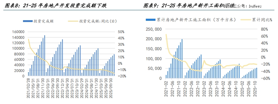 过去十余年,家居行业的扩张高度依托地产红利释放,形成了以“规模化生产+标准化产品+广泛经销商网络覆盖”为核心的供给侧增长模式。企业依靠渠道铺设、产能复制与市场外溢,便能够承接房地产上行周期带来的增量需求,行业发展长期与房地产开发投资、新开工面积及商品房销售面积保持高度同频。