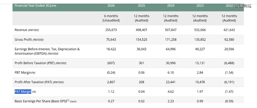 到2025财年情况更糟:收入同比跌2%,只剩4.984亿RM,净利润直接暴跌到20.8万RM,利润率只有0.04%,几乎等于不赚钱。