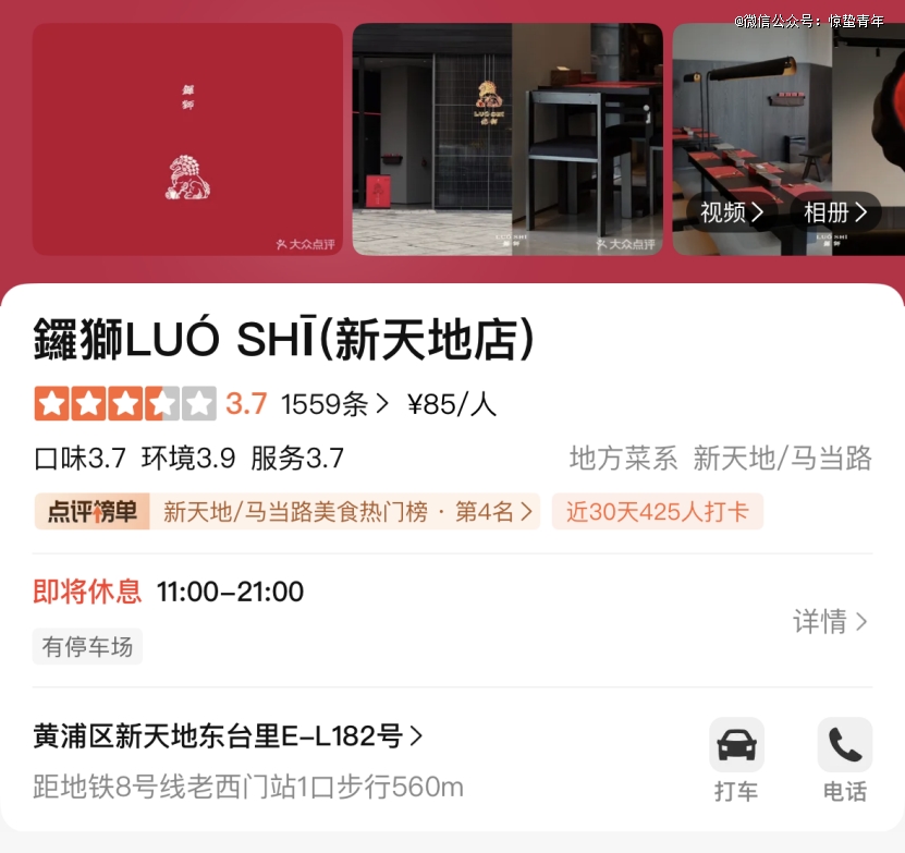 今年1月,阿嬷手作持股餐饮品牌“鑼獅LUÓ SHĪ”在上海试营业,主营螺蛳粉,目前仅一家门店,坐落于上海市中心新天地商圈。在点评网站上,消费者主要的批评声音是,即使在上海,55元一碗的螺蛳粉,价格也实在是太高了。