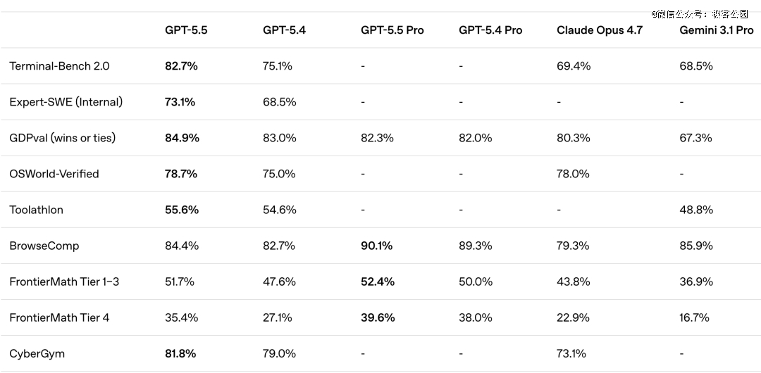 GPT5.5 的表现在同类中显得比较突出|图片来源:OpenAI