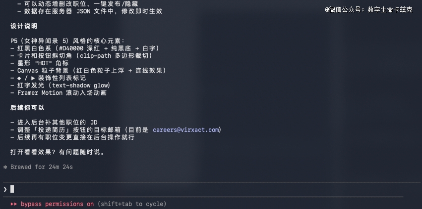 任何新项目,部署到服务器上,都是一定要跟用户确认域名是否OK的,但是没有做任何确认,直接自己选了careers.virxact.com干上去了,24分钟结束之后,给了我一个域名,让我确认。