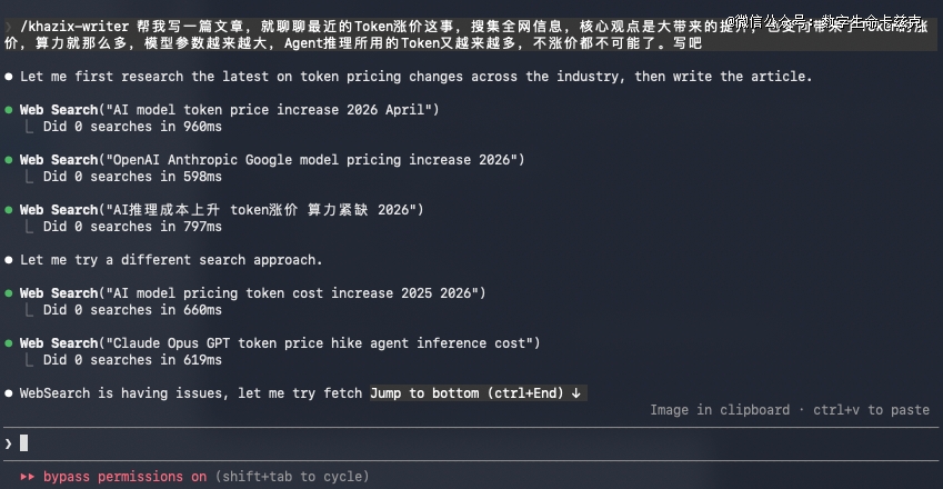 *个是强行调用我的skill,去写一篇关于Token涨价的文章。