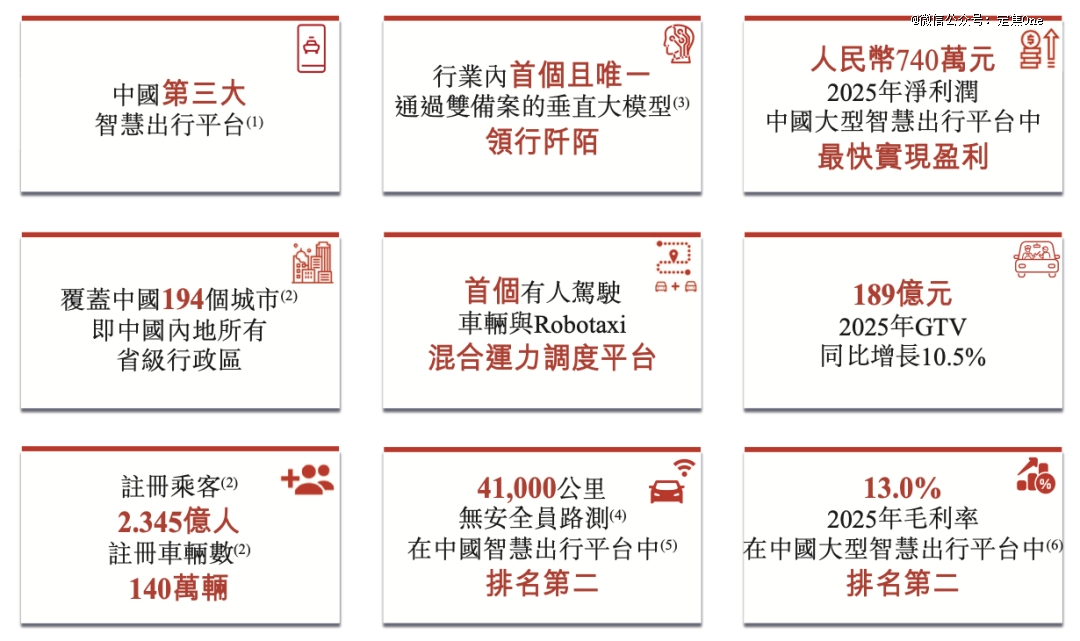 招股书显示,截至2025年12月31日,T3出行在全国194座城市开展业务,拥有超过2.3亿注册用户和约140万辆注册车辆,全年网约车总订单数达到7.97亿单,总交易额达189亿元,按照订单量计算,T3出行是中国第三大网约车出行平台,仅次于滴滴和曹操出行。