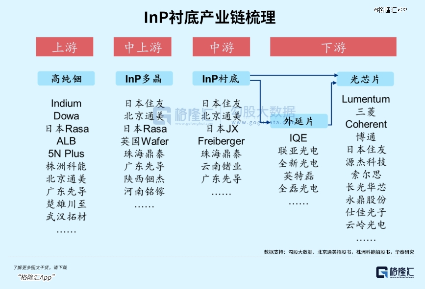 磷化铟价格持续上涨,其产业红利沿着产业链上下游传导,大概会形成三大明确的受益板块: