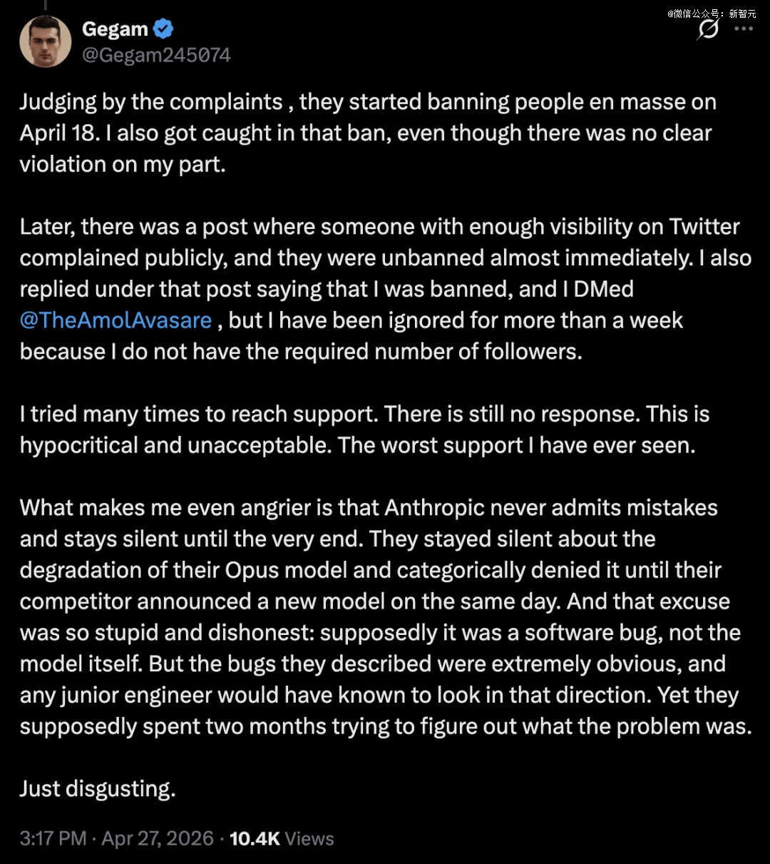 模式已经很清楚了:Anthropic的自动化风控系统存在系统性的误杀问题,而它的客户支持体系完全跟不上误杀的规模和速度。