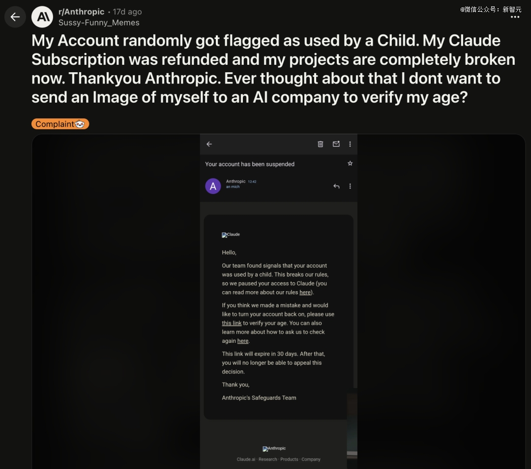 甚至有多名用户报告,自己的付费账号被错误标记为「未成年人」而遭到封禁。一个成年人,付着Pro的钱,被AI系统判定为小孩然后踢出门外。