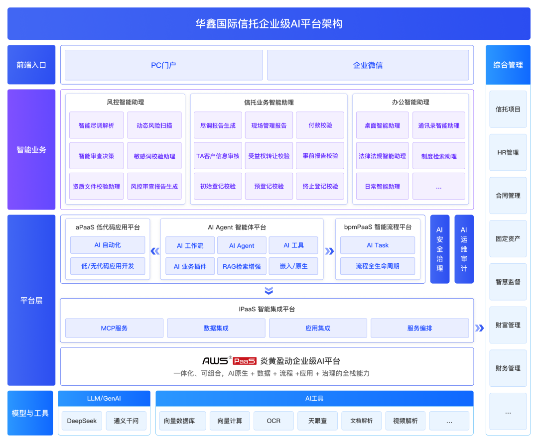 炎黄盈动与华鑫信托联手,以企业级AI平台为底座,推动AI在信托业务中的全面落地。双方通过战略合作形成三大核心价值: