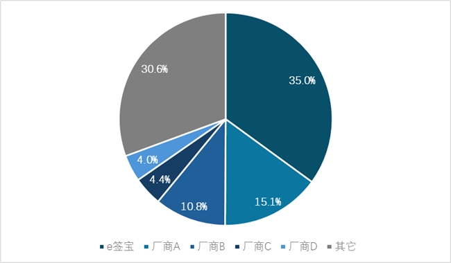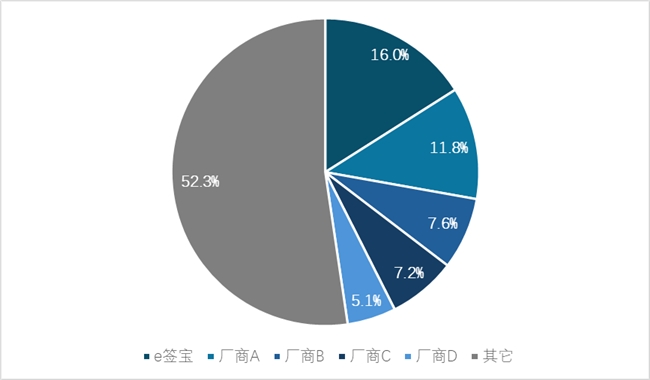 中国地区电子签产品行业市场竞争格局(单位:%,以销售额维度统计)