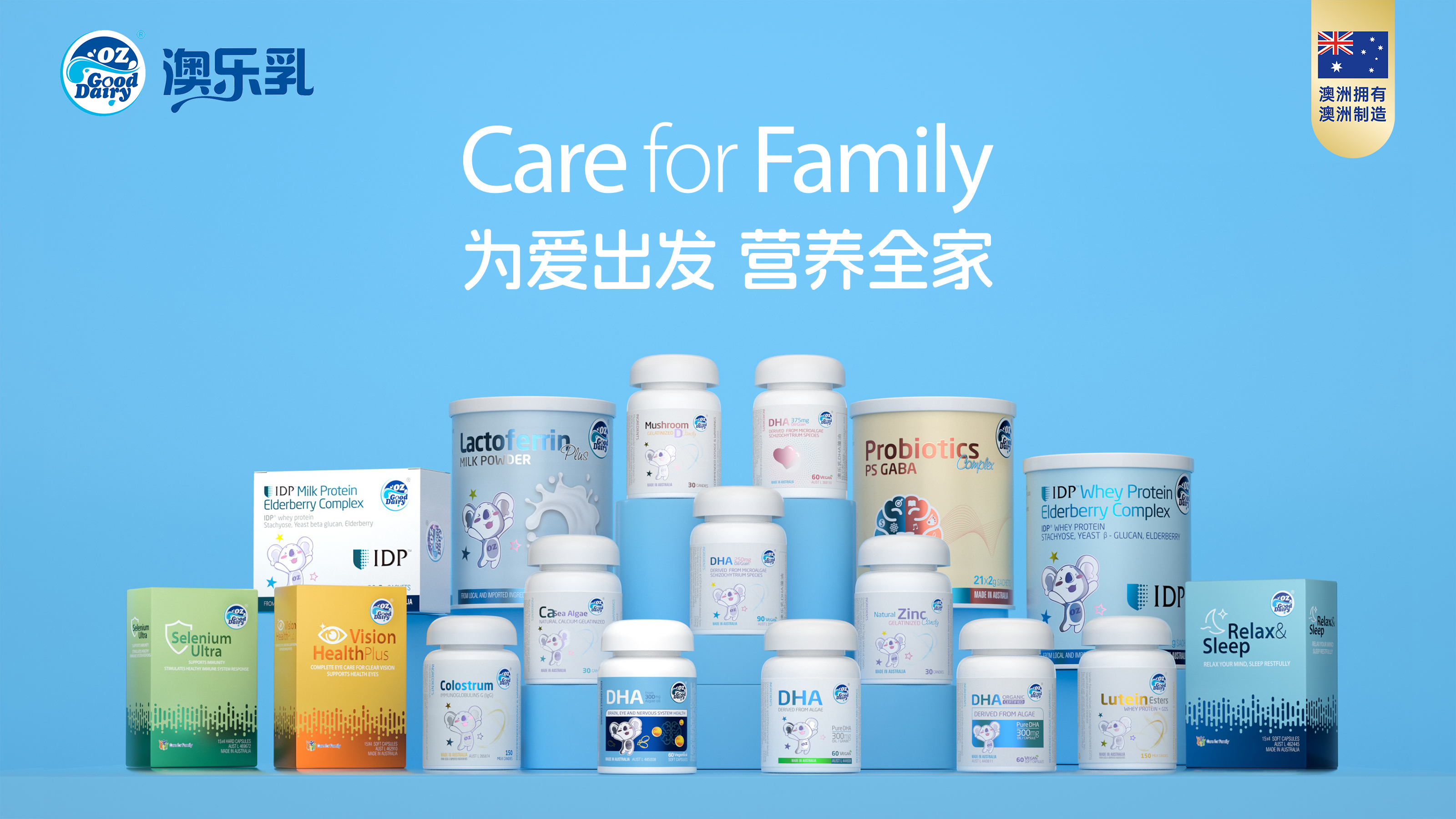 OZ Good Dairy 澳乐乳,澳洲发源、全球发展的营养品品牌。从关爱母婴发展至关爱全家,澳乐乳秉持“Care for Family”的核心理念,为全球家庭提供天然安全的营养产品,旨在满足全年龄段人群的营养需求。