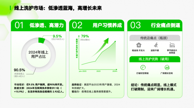 自2023年以来,生活衣物洗染市场保持稳定扩张趋势。2023年该领域营收达637.6亿元,占整体洗染行业近半数份额,用户规模接近3亿人。但便捷化服务的渗透率仍有提升空间,这意味着市场仍处于蓝海阶段。然而,当订单量快速上升时,如何保证不同时间、不同品类的衣物都能获得稳定一致的高质、高效服务,成为决定平台能否持续增长的关键。