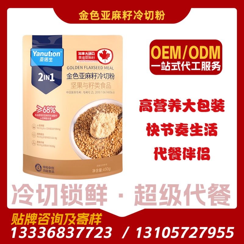在蓝本配方层面,中科中创针对不同人群和场景构建了丰富的产品矩阵。从面向减脂人群的强化蛋白亚麻籽粉、亚麻籽纤维营养粉,到日常膳食补充的亚麻籽膳食粉、金色亚麻籽冷切粉,再到面向年轻消费群体的即食零食燃籽魔方、亚麻籽坚果脆。客户可以根据自身品牌定位,在配料、含量、口味、功能方向上实现灵活定制,满足不同人群的多样化需求。