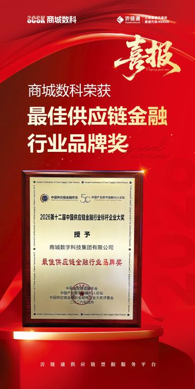 4月8日,2026第十二届中国供应链金融年会暨第12届中国供应链金融行业标杆大奖颁奖典礼于北京隆重举行。沂链通凭借在供应链金融服务领域的开创性实践与行业引领地位,从全国众多参评机构中脱颖而出,荣获“最 佳供应链金融行业品牌奖” 。这一殊荣,是对沂链通推动打造全国供应链票据生态示范标杆的权威认可,更是对其以数字科技重构产业链信用流转、引领供应链票据行业高质量发展的充分肯定。