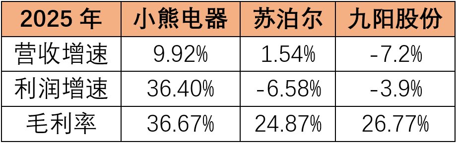 要知道,整个2025年,铜、塑料等大宗商品价格处于高位,行业面临共同的成本压力。对比同行,小熊电器的毛利率优势很明显。