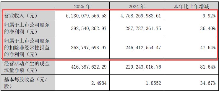 就在这个背景下,小熊电器(002959.SZ)实现业绩双增:2025年营收52.30亿元,同比增长9.92%;归母净利润3.93亿元,同比增长36.40%。