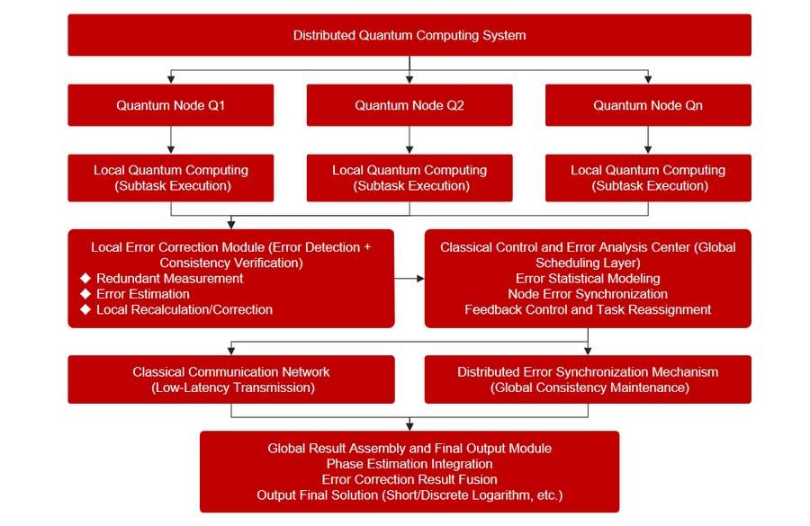 从技术实现上看,分布式量子计算的基本流程可以抽象为多个子任务在不同量子节点上并行执行,随后通过经典或量子通信将局部结果进行整合,最终得到全局解。在这一过程中,每个节点的计算误差以及通信过程中的噪声都会被逐步放大,特别是在涉及相位信息的算法中,微小偏差就可能导致最终结果完全偏离预期。因此,如何在不显著增加系统复杂度的前提下,对这些误差进行有效抑制,成为技术设计的关键。