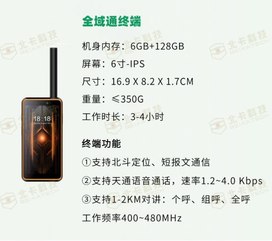 全域通终端接入“北斗卫星”,实现短报文、位置信息收发。