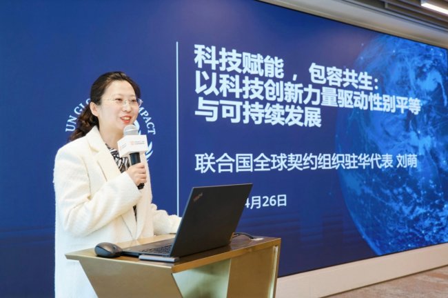 联合国全球契约组织驻华代表刘萌以《科技赋能,包容共生:以科技创新力量驱动性别平等与可持续发展》为题作主旨演讲。她以自信、自立、自强三个关键词开篇,系统阐释性别平等作为联合国17项可持续发展议程核心目标的重要意义,性别平等不仅是独立的核心目标,更是实现所有可持续发展目标的前提与基础,没有性别平等就无法实现真正的包容性可持续发展。当前全球范围内缩小性别数字鸿沟,将为全球经济带来近1.5万亿美元的额外收益,关注性别平等与妇女赋能已成为企业建立可持续韧性和竞争力的关键路径,能够显著提升企业人才吸引与创新能力、经营绩效与财务增长水平。