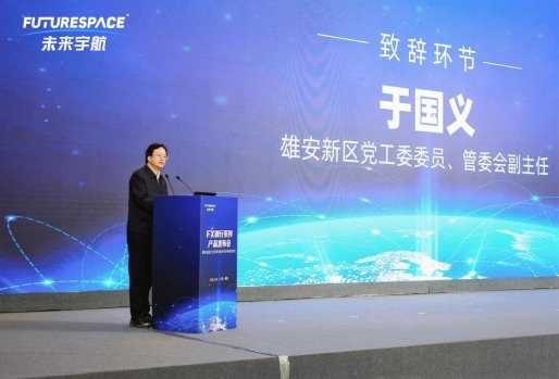 雄安新区党工委委员、管委会副主任 于国义代表雄安新区党工委、管委会致辞。他指出,设立雄安新区是千年大计、国家大事,当前新区正积极构建四大产业体系,已汇聚67家空天信息企业、9个创新平台落地。新区将持续强化创新赋能、生态协同、场景开放、服务保障,全力支持商业航天企业发展壮大,希望未来宇航深耕雄安,助力雄安建设新时代创新高地和高质量发展标杆城市。